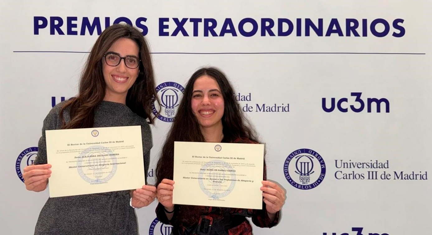 Nuestras compañeras María Er-Rahali García y Alejandra Delgado Romera han sido reconocidas con los Premios Extraordinarios al Mejor Expediente Académico de la Universidad Carlos III, un logro que pone en valor su excelencia académica y dedicación.