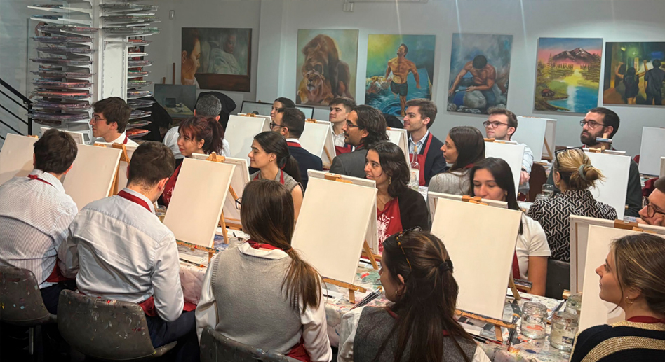 Pinceles, vino y trabajo en equipo